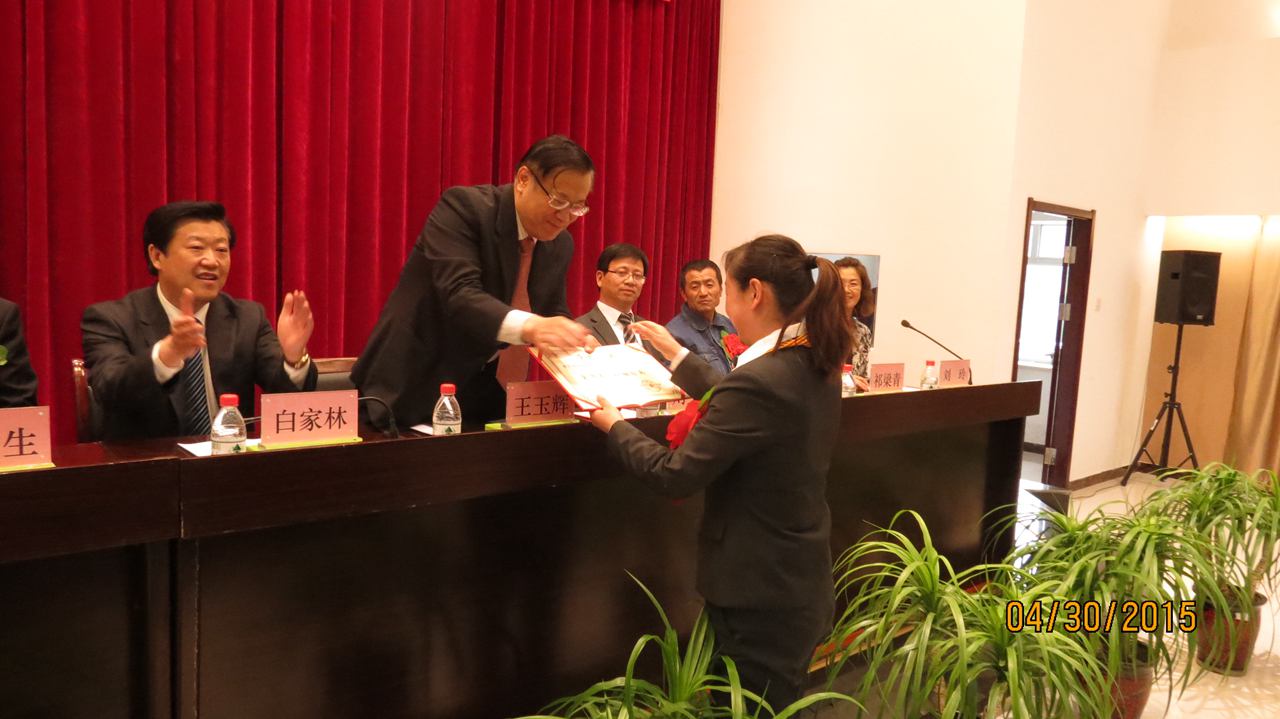 集團總經理王玉輝首先為榮獲"全國五一巾幗標兵"榮譽稱號的青海物產汽車貿易有限公司銷售總監(jiān)劉少俠頒發(fā)了榮譽證書。