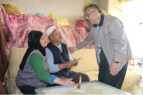 王玉輝書記一行在大通縣石山鄉(xiāng)黨委副書記胡懷強(qiáng)、集團(tuán)派駐第一書記張秉瑜的陪同下,首先來到兩戶重點(diǎn)幫扶對象的家中進(jìn)行幫扶慰問。貧困戶馬得倉患慢性腎炎和高血壓,其妻馬尕奴子患多種慢性病,年老體衰,沒有勞動(dòng)能力,生活十分困難。貧困戶宗統(tǒng)林患嚴(yán)重腰間盤突出疾病,兒子白血病去世,給貧困的家庭背負(fù)著20萬左右的債務(wù)。王玉輝書記對這兩戶因病致困特困戶的生活情況非常關(guān)注,詳細(xì)地詢問了他們的家庭基本情況和面臨的困難,了解了集團(tuán)駐村扶貧工作干部開展扶貧工作的情況。親切的話語貼近了與貧困群眾的心,貧困戶們握著他的手嘮著家常,愉快地說起了現(xiàn)在的生產(chǎn)生活情況和對未來生產(chǎn)生活的想法憧憬,所到之處時(shí)時(shí)傳來歡聲笑語。