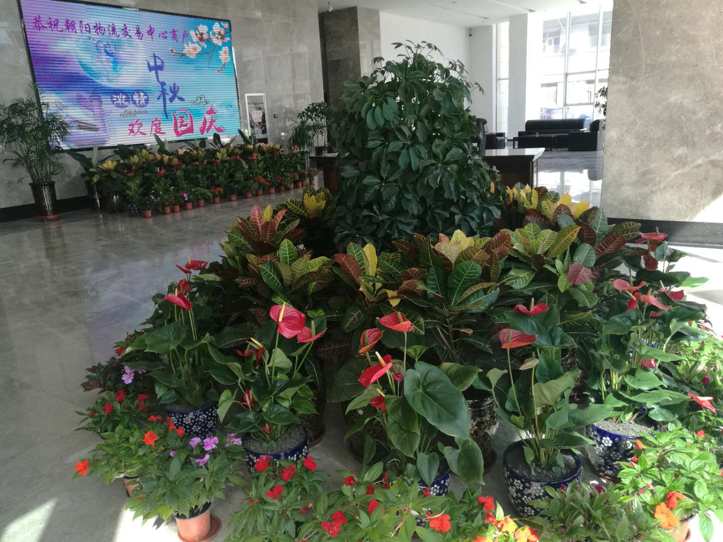 (朝物開投 訊 戴韻禮/文攝)為慶祝建國68周年,朝陽物流開發(fā)投資有限公司開展"喜迎國慶,歡度中秋"的準備工作。我公司在物產(chǎn)大廈門前紛紛懸掛起國旗和大紅燈籠,營造喜慶祥和的節(jié)日氣氛。在樓內(nèi)大廳擺放鮮花,迎接國慶節(jié)的到來。把黨的關(guān)心和關(guān)懷傳達到每一名員工,讓全體員工都能感受到公司"大家庭"的溫暖。也為喜迎黨的十九大勝利召開做好前期宣傳工作。