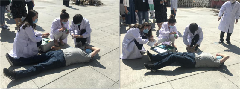 在模擬火災救援現(xiàn)場中發(fā)現(xiàn)被困人員,由應急救援隊將被困人員從火場中救出并帶至安全區(qū),由醫(yī)療救護組對傷員進行救治及轉移。