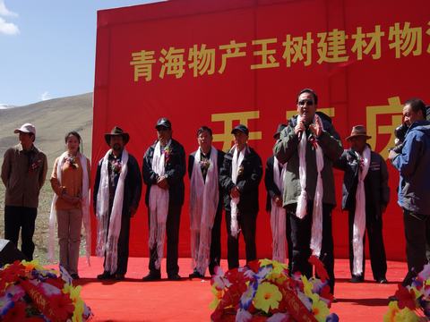 省玉樹地震災(zāi)后重建現(xiàn)場指揮部指揮長、副省長馬順清宣布建材物流集散中心正式開工并講話。省政府副秘書長巨偉、省經(jīng)委、省城鄉(xiāng)住房建設(shè)廳、西寧市政府、玉樹州政府相關(guān)部門、玉樹縣有關(guān)負(fù)責(zé)同志,省物產(chǎn)集團總經(jīng)理王玉輝、黨委書記白家林、副總經(jīng)理物產(chǎn)化工公司董事長耿保平等參加了開工儀式。