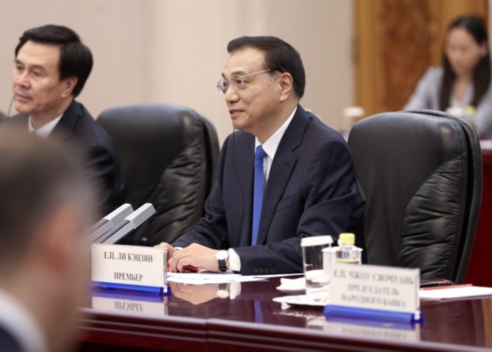 李克強(qiáng)與埃及代表團(tuán)成員握手
