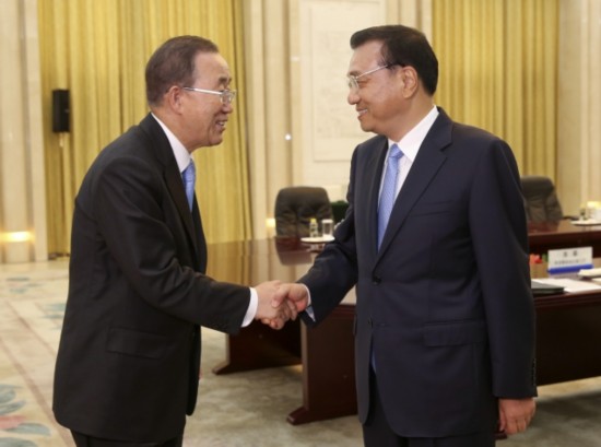 李克強(qiáng)總理會(huì)見(jiàn)聯(lián)合國(guó)秘書(shū)長(zhǎng)潘基文時(shí)說(shuō):"人類面臨的最大挑戰(zhàn),是在處理'減貧'和'應(yīng)對(duì)氣候變化'兩個(gè)問(wèn)題的過(guò)程中,取得一個(gè)平衡點(diǎn)。"