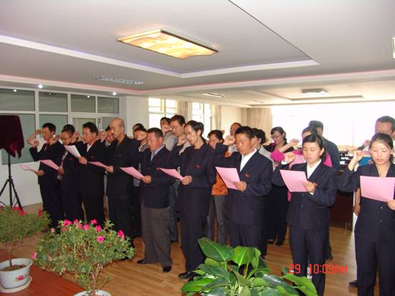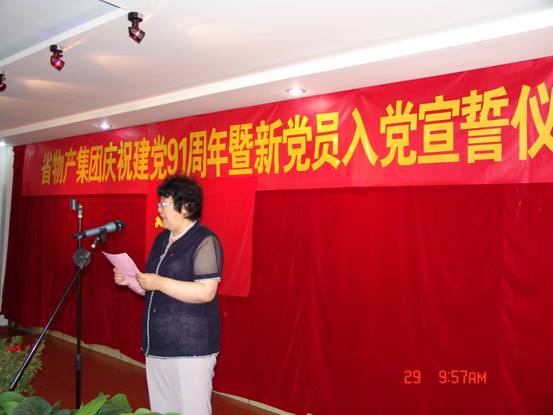 我宣誓:"我志愿加入中國(guó)共產(chǎn)黨,擁護(hù)黨的綱領(lǐng),遵守黨的章程,履行黨員義務(wù),執(zhí)行黨的決定,嚴(yán)守黨的紀(jì)律,保守黨的秘密,對(duì)黨忠誠(chéng),積極工作,為共產(chǎn)主義奮斗終身,隨時(shí)準(zhǔn)備為黨和人民犧牲一切,永不叛黨"。6月29日上午10∶00時(shí),17名新加入黨組織的中國(guó)共產(chǎn)黨預(yù)備黨員、所屬各黨組織書記、老黨員代表等30余人的莊嚴(yán)宣誓,標(biāo)志著青海物產(chǎn)系統(tǒng)慶祝建黨91周年系列活動(dòng)正式展開(kāi)。