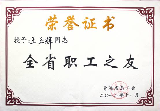 在2012年11月23日召開(kāi)的青海省工會(huì)第13次代表大會(huì)上,省總工會(huì)對(duì)全省優(yōu)秀個(gè)人、模范集體進(jìn)行了表彰。集團(tuán)總經(jīng)理王玉輝同志榮獲"全省職工之友"榮譽(yù)稱號(hào);青海物產(chǎn)物資配送有限責(zé)任公司工會(huì)榮獲"全省模范職工之家"榮譽(yù)稱號(hào);馬軍同志榮獲"全省優(yōu)秀工會(huì)積極分子"榮譽(yù)稱號(hào);丁勇同志榮獲"全省優(yōu)秀工會(huì)工作者"榮譽(yù)稱號(hào)。