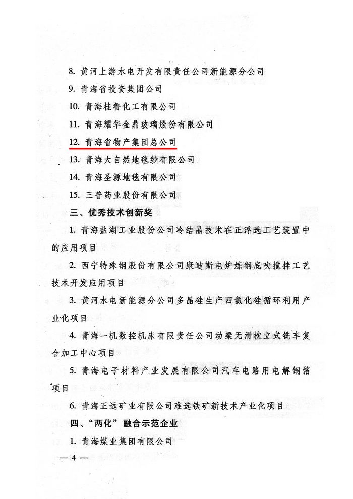 2012年,青海省物產集團總公司在省委、省政府及省國資委的大力支持和領導下,集團總公司按照全省工業(yè)經濟總體部署和要求,著力推進工業(yè)項目建設,榮獲"2012年度工業(yè)投資貢獻獎"。