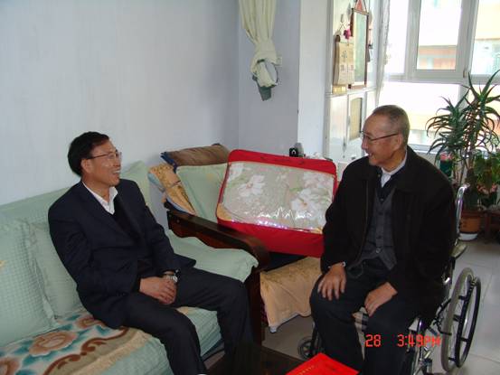 2013年1月28日,春節(jié)來(lái)臨之際,省委組織部王志明副部長(zhǎng)在省國(guó)資委黨委副書(shū)記毛占彪、物產(chǎn)集團(tuán)領(lǐng)導(dǎo)白家林、王仁芬的陪同下,走訪慰問(wèn)了集團(tuán)系統(tǒng)生活困難老黨員肖振東。王志明副部長(zhǎng)親切地詢問(wèn)肖振東的身體狀況、生活和家庭情況,發(fā)放了慰問(wèn)金和慰問(wèn)品,并希望他保重身體,愉快安度晚年。老黨員肖振東激動(dòng)地表示感謝黨組織的關(guān)懷,感謝上級(jí)領(lǐng)導(dǎo)的關(guān)心!